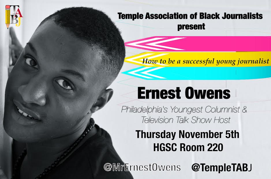 Join us TONIGHT for our guest speaker Journalist Ernest Owens! He will be speaking about how to enter into the media industry right out of college. You definitely don’t want to miss this! We’ll be in the SAC in room 220 at 7pm.
